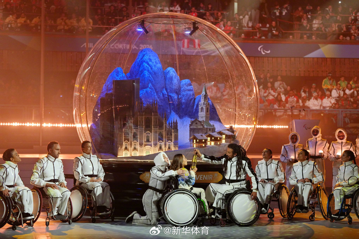 在帕森斯宣布米兰-科尔蒂纳冬残奥会闭幕后,一个巨大的水晶球模型被推进舞台中央。水晶球中,本届冬残奥会举办地的地标建筑和雪山盛景一览无余,这是意大利送给所有赛事参与者的珍贵“伴手礼”。